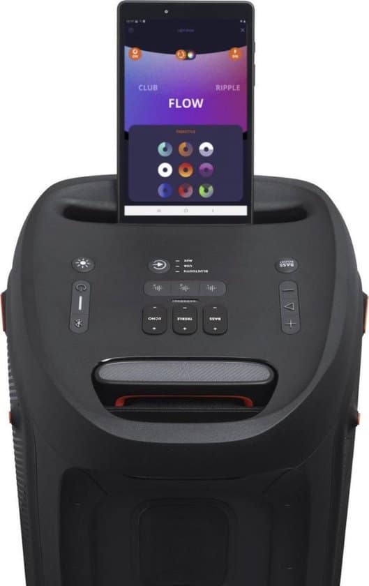 Van de DJ-stand tot de chillplek onder de bomen, bedien het feest vanaf je telefoon met de PartyBoxapp. Schakel tussen nummers, verander de lichtshow, bedien karaokefuncties en meer, allemaal in slechts een paar tikken en swipes.