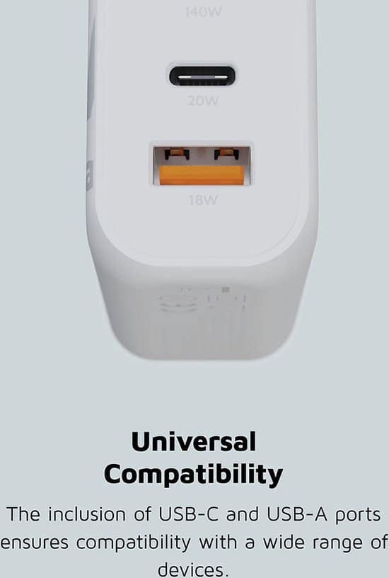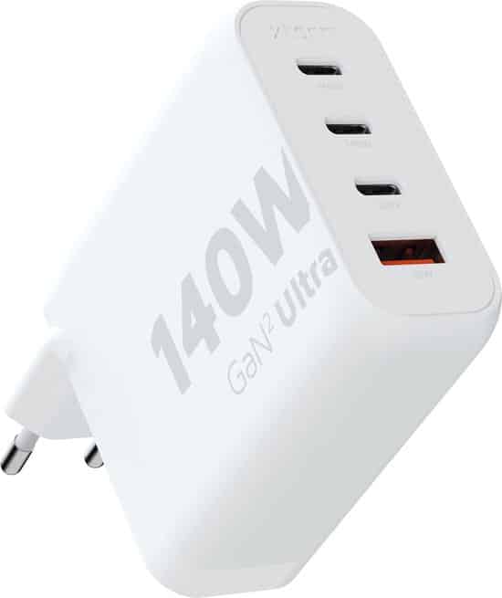 • Laadt zelfs 140W USB-C PD laptops zoals de MacBook Pro 16″ op volle snelheid op