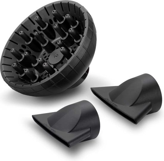 Bij de föhn krijg je één smalle blaasmond van 6 x 75mm en nog één extra smalle blaasmond van 6 x 90mm. Doordat de blaasmonden smal zijn komt de lucht er zeer geconcentreerd uit en krijg jij je haar mooi strak gestyled. Je kunt hierdoor wat preciezer met iedere lok aan de slag. Kies uit de 2 snelheden en 3 temperatuurinstellingen wat past bij jouw haar en manier van stylen. Met de diffuser creëer je volume. Heb je zelf al mooie krullen, dan is het gebruik van een diffuser perfect voor het accentueren van je krul.