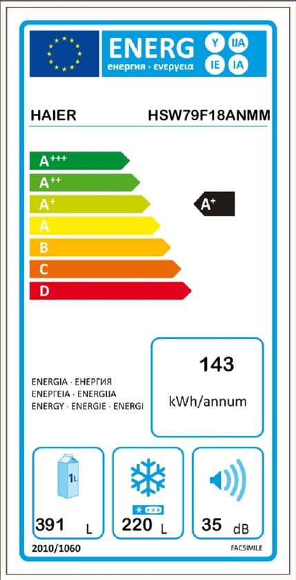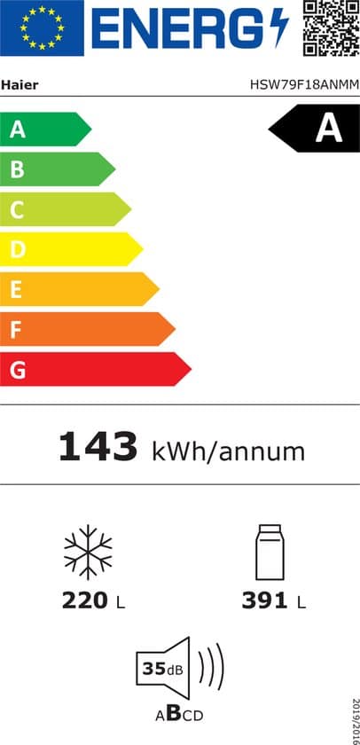 | Jaarlijks energieverbruik in kWh | 143 kWh |