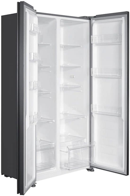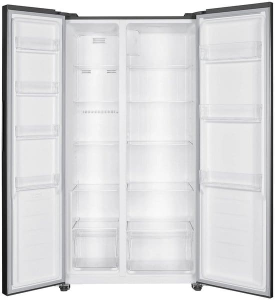 Voeg een vleugje elegantie toe aan je keuken met deze KDD 171 Amerikaanse koelkast van Koenic met zijn zwarte afwerking. Hij biedt een totaal volume van 442 liter waarin je een grote hoeveelheid voedsel kunt bewaren. Links bevindt zich het vriesvak van 151 liter en rechts de koelkast van 291 liter. Je hebt altijd vers water en ijsblokjes bij de hand dankzij de dispenser op de linkerdeur. Om je etenswaren optimaal te bewaren, hebben de 2 compartimenten een aantal stevige glazen leggers, evenals vershoudladen en opbergbakken in de deuren. Koenic heeft dit apparaat uitgerust met een dubbel koelsysteem die eenvoudig te bedienen is dankzij het zwarte lcd-touchscreen op de deur.