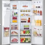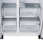 LG GSLE81PYBC. Apparaatplaatsing: Vrijstaand, Productontwerp: Amerikaanse deur, Kleur van het product: Zilver. Totale nettocapaciteit: 628 l, Klimaatklasse: T, Geluidsemissieklasse: B. Nettocapaciteit koelkast: 407 l, Soort lamp: LED. Nettocapaciteit vriezer: 221 l, Vriezer positie: Ernaast, Vriescapaciteit: 12 kg/24u. Bedieningsapps ondersteund: LG ThinQ Amerikaanse deur Vrijstaand 628 l Zilver