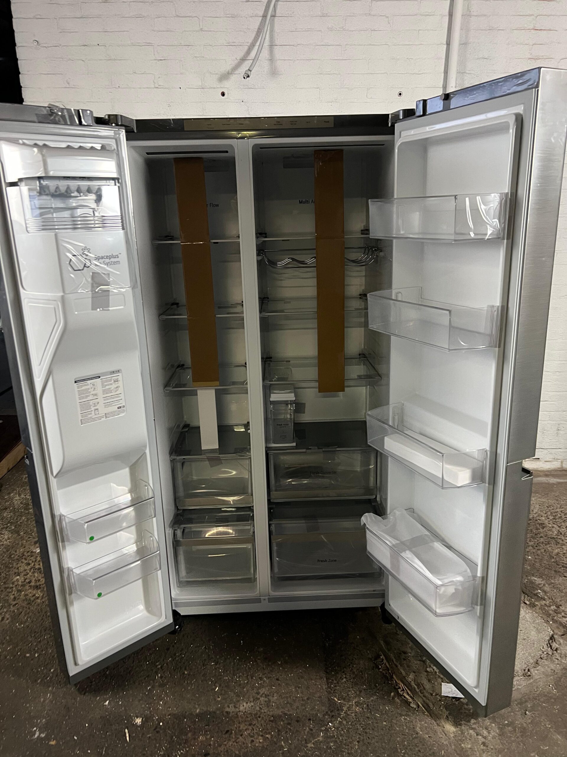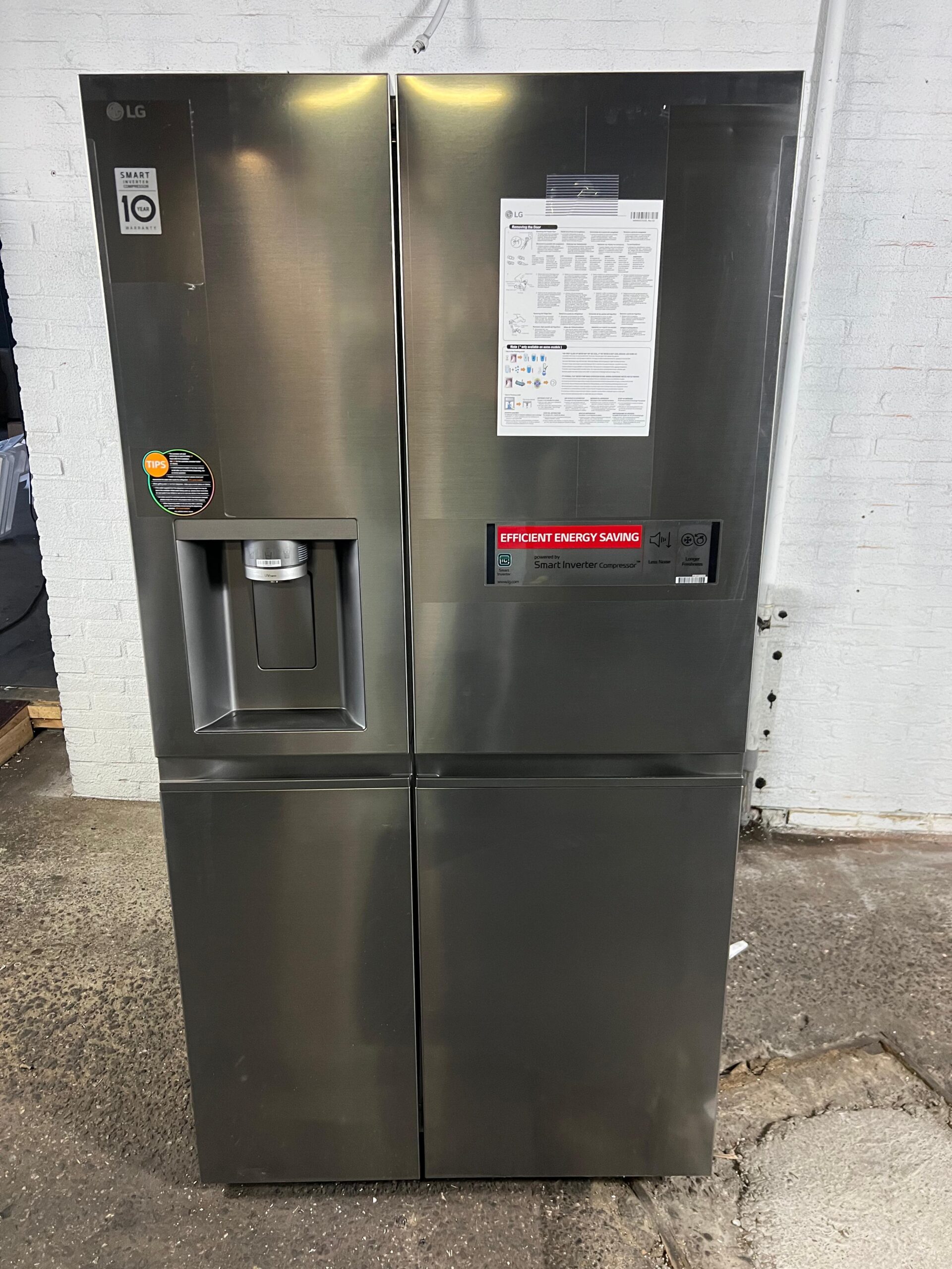 LG GSLE81PYBC. Apparaatplaatsing: Vrijstaand, Productontwerp: Amerikaanse deur, Kleur van het product: Zilver. Totale nettocapaciteit: 628 l, Klimaatklasse: T, Geluidsemissieklasse: B. Nettocapaciteit koelkast: 407 l, Soort lamp: LED. Nettocapaciteit vriezer: 221 l, Vriezer positie: Ernaast, Vriescapaciteit: 12 kg/24u. Bedieningsapps ondersteund: LG ThinQ Amerikaanse deur Vrijstaand 628 l Zilver