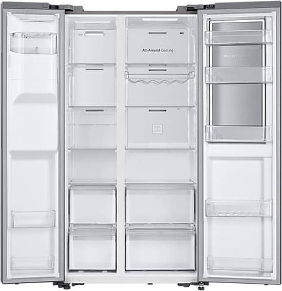 Samsung RH65DG54R3S9. Apparaatplaatsing: Vrijstaand, Kleur van het product: Roestvrijstaal, Deurscharnieren: Links/rechts. Totale nettocapaciteit: 628 l, Klimaatklasse: ST-T, Geluidsemissieklasse: C. Nettocapaciteit koelkast: 410 l, Soort lamp: LED. Nettocapaciteit vriezer: 218 l, Vriezer positie: Ernaast, Vriescapaciteit: 15 kg/24u. Snoerlengte: 2,1 m System.Collections.Generic.List`1[System.String]
