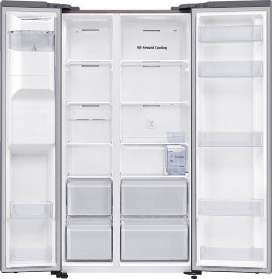 Met 635 liter heb je in deze ruime Amerikaanse koelkast genoeg plek voor al jouw boodschappen dankzij SpaceMax. Voor de ijs- en waterdispenser van Samsung RS64DG5303S9EF heb je geen wateraansluiting nodig en is ideaal voor als je al een bestaande keuken hebt. Voor de koelruimte en vriesruimte zijn er aparte koelsystemen voor het bereiken van de optimale temperatuur en kan je producten sneller op temperatuur brengen door middel van de PowerCooling/Freezing functie. Ontdooien is nooit meer nodig, vanwege het No Frost systeem.