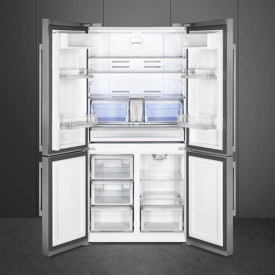 Smeg FQ60XDAIF. Apparaatplaatsing: Vrijstaand, Kleur van het product: Roestvrijstaal, Vormgeving: Amerikaanse deur. Klimaatklasse: SN-T, Geluidsniveau: 43 dB, Totale brutocapaciteit: 626 l. Nettocapaciteit koelkast: 376 l. Nettocapaciteit vriezer: 165 l, Vriezer positie: Onder, Vriescapaciteit: 8 kg/24u. Energie-efficiëntieklasse: A++, Jaarlijks energieverbruik: 356 kWu
