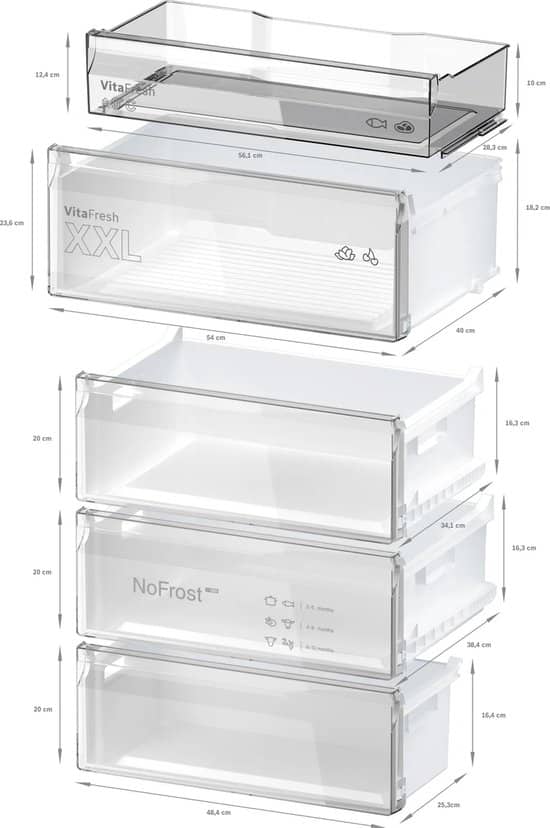 Het ruime VitaFresh XXL -systeem biedt de ideale bewaaromgeving voor al je verse levensmiddelen. Het houdt de temperatuur lager voor vlees en vis, en er is een temperatuurgeregelde vershoudlade die je fruit en groenten ook echt vers houdt.