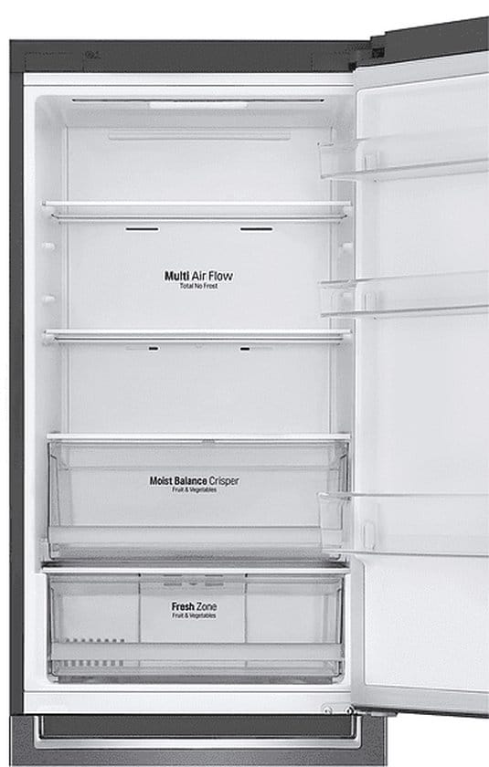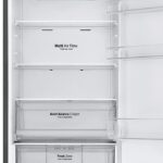 De ruime LG GBB61DSHMN koelvriescombinatie met 341 liter opbergruimte houdt je voedsel zo lang mogelijk vers dankzij LG zijn NatureFRESH koeltechniek met onder andere Door Cooling en FreshBalancer. Met Door Cooling wordt de koelkast zowel aan de voor- als achterzijde gekoeld. De FRESHBalancer zorgt ervoor dat het vocht beter wordt vastgehouden en je hierdoor een ideale vochtomstandigheid voor je groente en fruit instelt. Beide functionaliteiten zorgen voor optimale koeling en versheid. Dankzij de Linear Inverter Compressor is het product ook nog eens stil met een geluidsniveau van 36 dB. Met een compatibele smartphone regel je bijvoorbeeld de temperatuurinstellingen van de koelkast op afstand via de SmartThinQ-app. Hierdoor activeer je eenvoudig de Super Freeze of Super Cool functie terwijl je boodschappen doet.