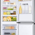 De Samsung RB34C600CSA koelkast biedt geavanceerde functies voor efficiëntie en gebruiksgemak. Met de AI Power Mode wordt het energieverbruik tot 15% verminderd door automatische optimalisatie van de compressorsnelheid en ontdooicyclus. De SpaceMax™-technologie zorgt voor een ruime inhoud van 344 liter zonder de buitenafmetingen te vergroten. SmartThings Home Care biedt realtime waarschuwingen en onderhoudsstatussen. All-around Cooling handhaaft gelijkmatige koeling in elk compartiment, terwijl de NoFrost-technologie ijsvorming in de vriezer voorkomt, wat handmatig ontdooien elimineert en energie bespaart. Deze koelkast biedt geavanceerde prestaties en gemak voor dagelijks gebruik.