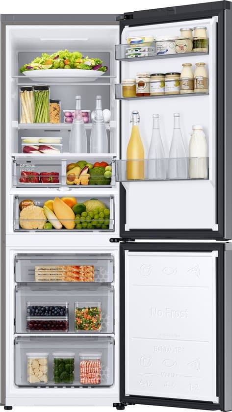 Met de Samsung RB34C704DB1 koel-vriescombinatie geniet je van een slimme, ruime en energiezuinige koelkast die perfect past in elke moderne keuken. Dankzij innovatieve technologieën zoals SpaceMax, NoFrost en de Wi-Fi functie voor koppeling met SmartThings, maak je het bewaren van boodschappen eenvoudiger én duurzamer.