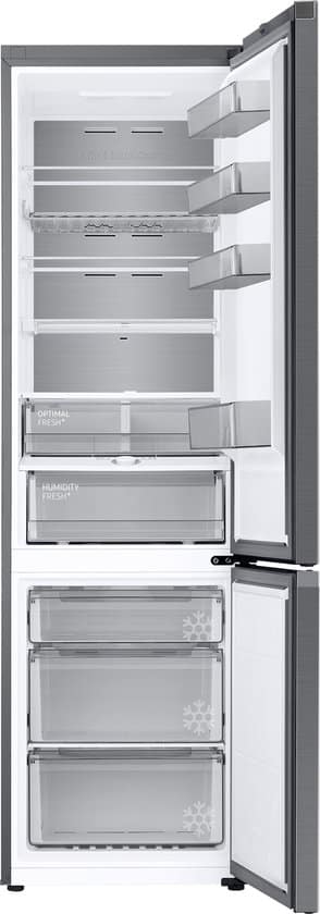 Samsung RL38C776ASR. Totale nettocapaciteit: 387 l. Deurscharnieren: Rechts. Klimaatklasse: SN-T, Geluidsniveau: 35 dB. Nettocapaciteit koelkast: 273 l, No Frost (koelkast), Koelkast binnenverlichting, Aantal planken koelkast: 4. Nettocapaciteit vriezer: 114 l, Vriescapaciteit: 8 kg/24u, No Frost (vriezer). Vers zone compartiment. Energie-efficiëntieklasse: A, Jaarlijks energieverbruik: 108 kWu. Kleur van het product: Roestvrijstaal