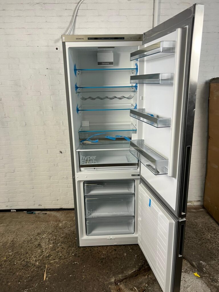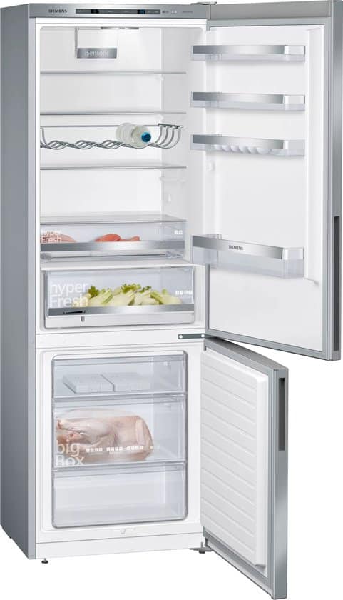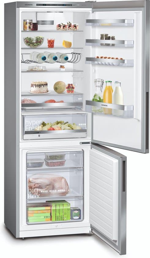 De Siemens KG49EAICA koelvriescombinatie beschikt over een totale netto inhoud van 403 liter en beschikt over onder andere een flessenrooster, 0°C zone lade en een bigBox in de vriesruimte. De koelvriescombinatie heeft een gescheiden temperatuursregeling voor de optimale temperaturen en nieuwe producten kan je snel koelen via de superKoelen functie. De LED verlichting bied een helder overzicht in de koelruimte en met de antiFIngerprint coating blijft het exterieur van je koelkast vingerafdrukvrij.