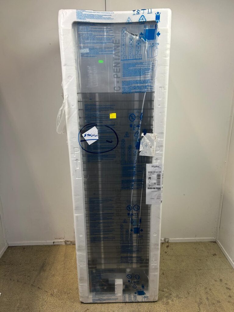 Whirlpool W9M 951A OX. Totale nettocapaciteit: 355 l. Deurscharnieren: Rechts. Klimaatklasse: SN-T, Geluidsniveau: 35 dB. Nettocapaciteit koelkast: 257 l, No Frost (koelkast), Koelkast binnenverlichting, Aantal planken koelkast: 5. Nettocapaciteit vriezer: 98 l, Vriescapaciteit: 16 kg/24u, No Frost (vriezer). Vers zone compartiment. Energie-efficiëntieklasse: B, Jaarlijks energieverbruik: 126 kWu. Kleur van het product: Roestvrijstaal