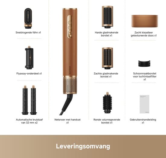 AirStyle Pro heeft 7 verwisselbare opzetstukken die opties op maat bieden voor verschillende haarstijlen. Of u het haar nu krult, glad maakt of volume aan toevoegt, het biedt de flexibiliteit om veelzijdige looks te creëren die zijn afgestemd op uw voorkeuren.