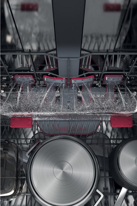 Dankzij de extra hogedrukstralen aan de achterkant van de vaatwasser worden zelfs de vuilste voorwerpen, zoals bijvoorbeeld aangekoekte ovenschalen, perfect schoon – zonder voorspoelen. Bespaar plaats in de vaatwasser door potten en pannen met de opening naar achteren te plaatsen – hierdoor kan je nog meer in de vaatwasser plaatsen en is een optimale reiniging van alle vaatwerk in één afwasbeurt mogelijk, inclusief borden, glazen en bestek. Zonder extra energieverbruik.