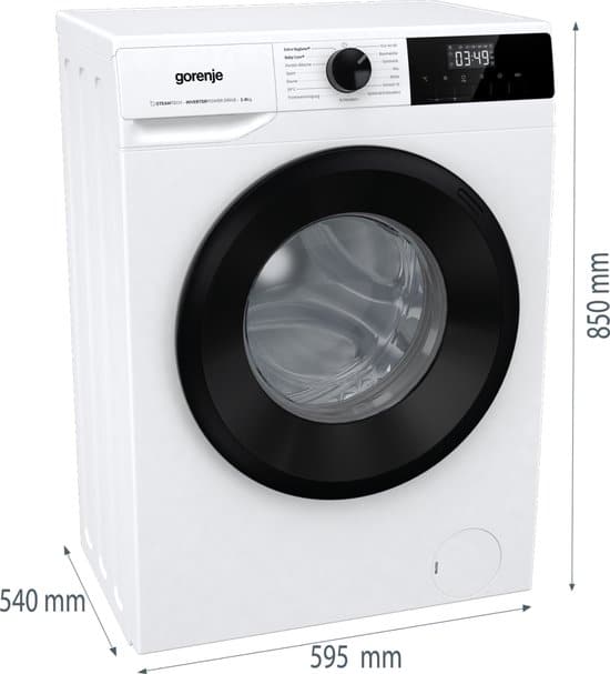 Gorenje WNHPI84APS/DE. Type lader: Voorbelading. Nominale capaciteit: 8 kg, Centrifuge-droger klasse: B, Geluidsniveau bij centrifugeren: 72 dB, Maximale centrifugesnelheid: 1400 RPM. Kleur van het product: Wit. Breedte: 595 mm, Diepte: 540 mm, Hoogte: 850 mm. Energie-efficiëntieklasse: A