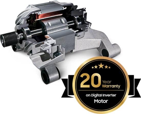 De wasmachine beschikt over een digital inverter motor. Door de sterke magneten in deze motor is er minder wrijving. Hierdoor is de wasmachine energiezuiniger, stiller en krachtiger. Omdat de wasmachine een koolborstelloze motor heeft en er minder slijtage ontstaat wordt er direct minder energie verbruikt. Dit is beter voor het energieverbruik, maar ook voor je portemonnee.